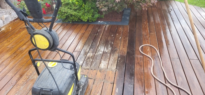 Préparation d’une terrasse en bois pour l’hiver en lui offrant un entretien complet alliant nettoyage en profondeur et protection optimale. Nous avons procédé à un nettoyage minutieux pour éliminer saletés, mousses et résidus, assurant ainsi la longévité de votre surface. Ensuite, la saturation pénètre le bois pour le protéger contre les agressions climatiques tout en sublimant sa couleur naturelle. Cette préparation est essentielle pour préserver la beauté et la durabilité d’une terrasse face aux rigueurs de l’hiver.